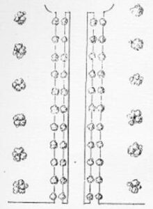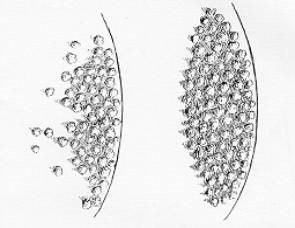 - Florestas e bosques: No Estilo Francês, as árvores são plantadas agrupadas e densamente, formando bosques que são recortados simetricamente por caminhos. Em outros estilos, pode-se deixar uma abertura no bosque para permitir a visualização da edificação.Para criar um efeito mais pitoresco, recomenda-se modificar as cotas do terreno. Outra alternativa é deixar a borda do maciço recortada, com árvores plantadas fora de alinhamento e próximas ao maciço adensado. Isso cria um efeito mais naturalista. Por outro lado, também é possível manter um alinhamento de plantio em formato arredondado, conferindo um visual mais tradicional (Figura abaixo).