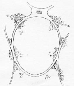 Para se chegar à edificação principal, sempre há dois caminhos. Entretanto, a entrada nunca deve ficar diretamente defronte à edificação. Caso não haja outra alternativa, deve-se, por motivos de segurança, implantar um maciço arbóreo na frente do portão de entrada. Dessa maneira, o observador que passa pelo parque não terá uma visão clara de seu interior. Ainda assim, as laterais desse maciço devem permanecer visíveis, para que a segurança da edificação seja mantida, permitindo o controle de quem adentra o recinto (Figura abaixo).